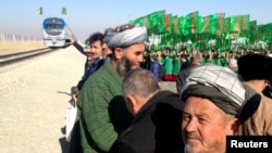 Открытие железной дороги, связавшей Туркменистан с Афганистаном, собрало тысячи людей с обеих сторон границы на праздничные мероприятия.