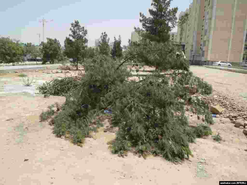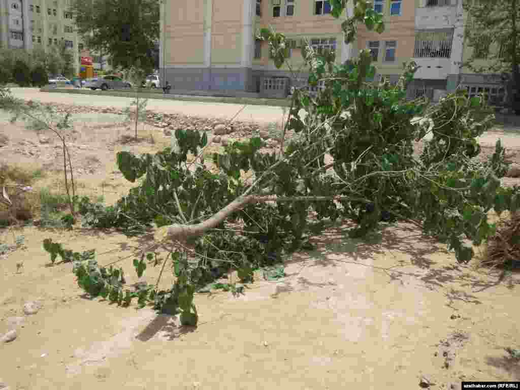 Власти Ашхабада активизировали работу по вырубке многолетних, тенистых деревьев, еще сохранившихся в некоторых частях города. Эти работы начались вслед за "ознакомительной прогулкой" президента Гурбангулы Бердымухамедова на вертолете. Облетев 15 июня столицу, президент выразил недовольство состоянием улиц и дорог, объявил выговор чиновникам за "безответственное отношение" к благоустройству столицы. Власти страны пропагандируют политику озеленения и сообщают о высадке в столице и регионах 3 миллионов саженцев в год.