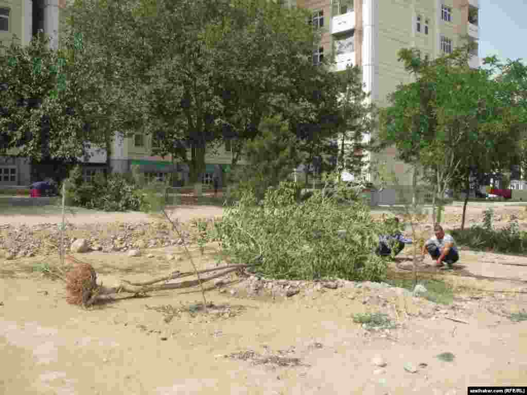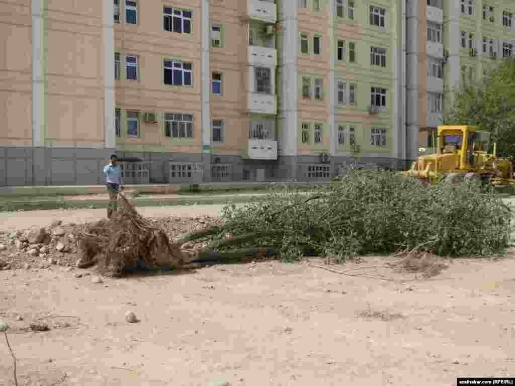 Власти Ашхабада активизировали работу по вырубке многолетних, тенистых деревьев, еще сохранившихся в некоторых частях города. Эти работы начались вслед за "ознакомительной прогулкой" президента Гурбангулы Бердымухамедова на вертолете. Облетев 15 июня столицу, президент выразил недовольство состоянием улиц и дорог, объявил выговор чиновникам за "безответственное отношение" к благоустройству столицы. Власти страны пропагандируют политику озеленения и сообщают о высадке в столице и регионах 3 миллионов саженцев в год.