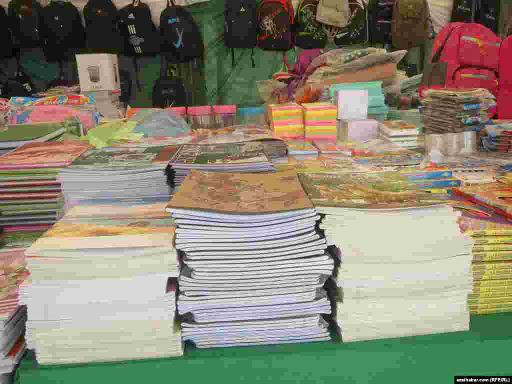 Перед торговым центром "15 лет Независимости" в Ашхабаде открылась ярмарка школьных принадлежностей. Как отмечают покупатели, цены на товары выросли в несколько раз.