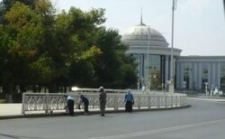 В Ашхабаде повсеместно можно увидеть женщин с закрытыми лицами, вручную моющих и убирающих, автобусные остановки, проезжую часть и тротуары.