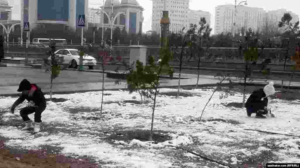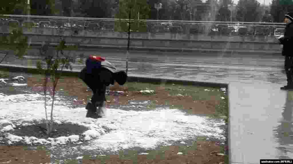 11 февраля в столице Туркменистана выпал снег. Сногопад наблюдался в течение нескольких часов.