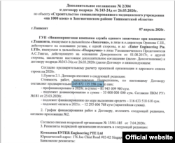 12 ноября 2020 года в дополнительных соглашениях, подписанных между инжиниринговой компанией мэра столицы Артыкходжаева «Ягона буюртмачи хизмати» и ООО «Узтемирйулкурилишмонтаж», стоимость строительства ковидной спецбольницы повышается до 320 827 215 000 сумов.