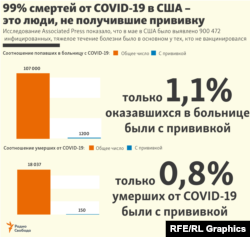 Но и 40 процентов привитых среди оказавшихся в больнице – это гораздо больше цифр американской официальной статистики. По этим данным, доля непривитых среди госпитализированных – 97 процентов.