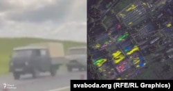 Внешний вид, цвета, а также тип автомобилей сходны с теми грузовиками с оборудованием, которые очевидцы видели в последние дни на трассе М5 "Гомель-Минск". Журналисты проанализировали два видео, размещенных в телеграм-канале "Беларусь мозгов". Одно из видео могло быть снято на дороге возле Осиповичей и поселка Камарин, а второе – на Бабруйской объездной дороге, когда поезд пересекал реку Березину. Оба раза машины двигались в направлении, совпадающем с расположением полевого лагеря.