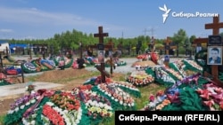Одна дата смерти — 15 марта этого года — на самом деле выбита сразу на четырёх могилах: Кирилла Боровикова, Антона Якимца, Дмитрия Тисина, Александра Климова. Как удалось узнать журналистам «Сибирь.Реалии», минимум двое из похороненных здесь — Боровиков и Якимец — были завербованы в 29-й кемеровской колонии строго режима представителями ЧВК «Вагнер». В той самой, откуда, по данным правозащитников Gulagu.net, в ноябре 2022 года вывезли в Украину более 20 машин заключённых. Вероятно, наёмники погибли при взятии населённого пункта Зализнянское в Бахмутском районе Украины. Рядом с Антоном Якимцом похоронен Станислав Чигвинцев, они жили неподалеку друг от друга, сидели в одной колонии, откуда были завербованы, но Чигвинцев погиб раньше — в январе 2023-го.