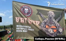 Мужчины сфотографировали развевающийся флаг «Вагнер — музыканты, которых знает весь мир» и, не задержавшись ни у одной из могил, уехали.